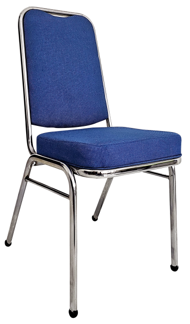 Enjoy years of comfort by sitting in the injection foam seat cushion with premium fabric upholstery. This VTR-01 model is available in dark blue and red, making it easy to match any room decor. This four-leg stackable chair is nickel chrome plated and designed to suit sophisticated gatherings and atmospheres. The chair's dimensions of 42W x 53D keep the design compact in order to maximize storage space. Place the chair anywhere, including halls, classrooms, churches, and dining rooms. When not in use, simply hold the hole on top of the chair to store or move it.